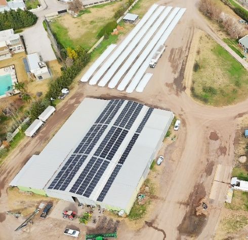 Esta planta ganadera se encuentra en la ciudad de ARTEAGA , Santa Fe, se ha colocado un equipo HUAWEI 150kW con 300 paneles JINKO 595Wp.